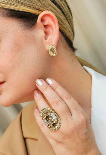Brinco Esperanza classic de gota com strass peach e black diamond