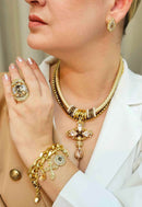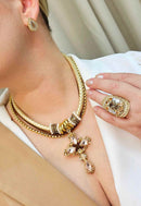 Metal banhado e strass.