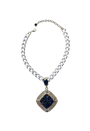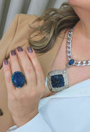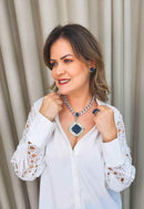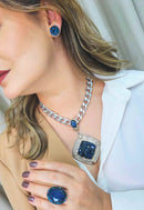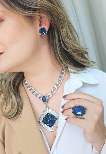 Colar Carmine com pingente de pedras azuis banhado no prata